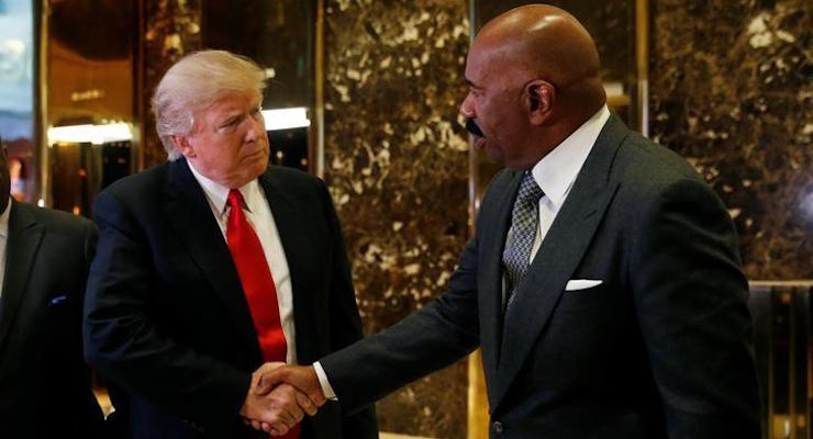 U.S.President-elect Donald Trump shakes hands with television personality Steve Harvey after their meeting at Trump Tower in New York, U.S., January 13, 2017. (Photo: Reuters)