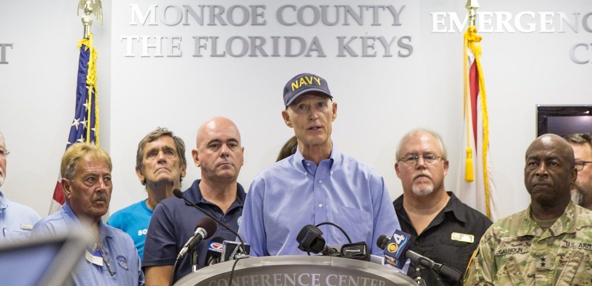 Florida Governor Rick Scott meets with his team and officials in preparation for Hurricane Irma in Jacksonville on September 7, 2017.